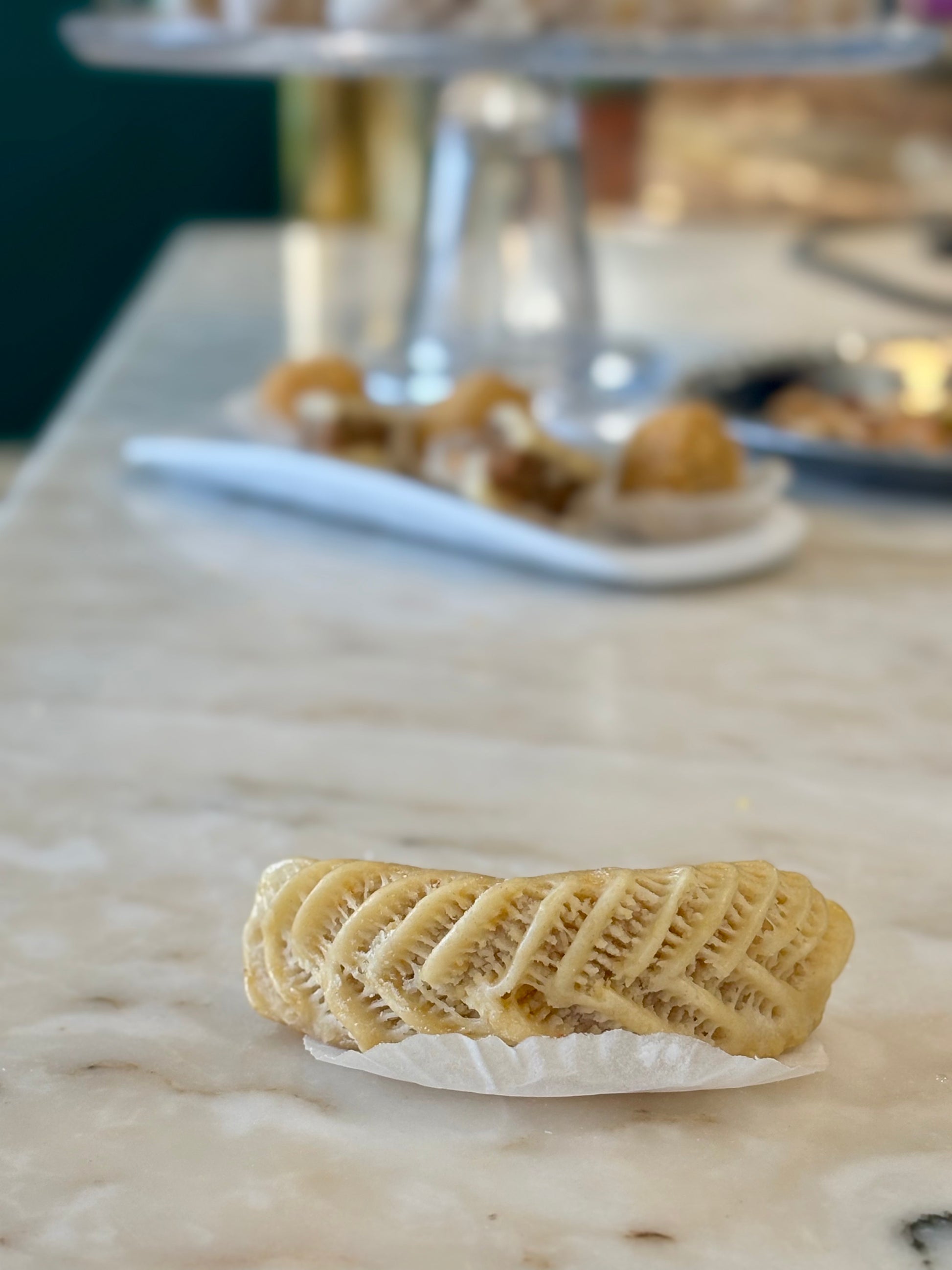 Traditionnelle corne de gazelle pâte d'amande parfumée à la fleur d'oranger.